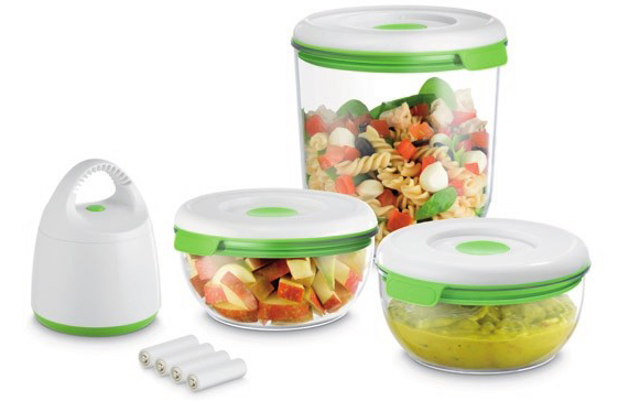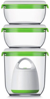 Cet appareil malin permet de garder la nourriture fraîche en extrayant l’air à l’intérieur des récipients pour y créer un environnement sain. L’apparition des bactéries est réduite (ce qui empêche la détérioration et la moisissure prématurées des denrées), la saveur et les qualités nutritionnelles des aliments sont intactes, leur durée de vie prolongée.