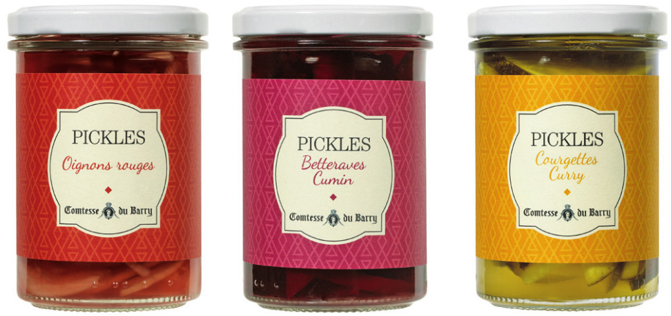 Pour ces trois préparations insolites, Comtesse du Barry a choisi de délicieux légumes français qui ont développé lentement leur bouquet dans du vinaigre et des aromates.