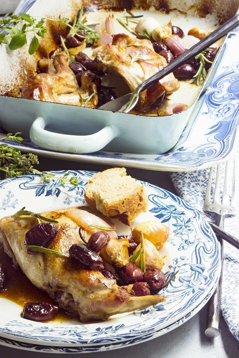 Lapin rôti à la maltaise aux olives, au romarin et à l’ail