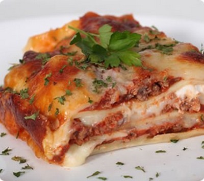 6.Huilez le plat à lasagnes. Posez une fine couche de béchamel, puis : lasagnes, bolognaise, béchamel et parmesan, et cela 3 fois de suite.