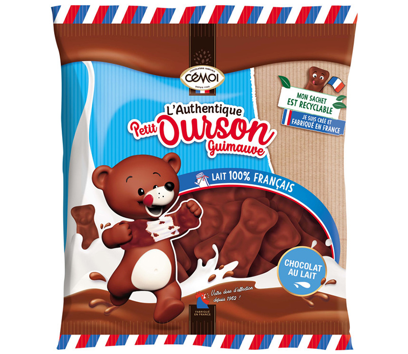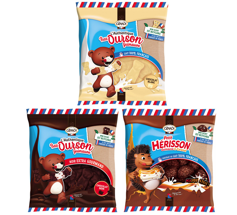 Le chocolatier français CÉMOI a donc sélectionné un emballage papier, plus éco-esponsable, à la fois robuste et recyclable, pour protéger les plus célèbres des guimauves chocolatées. De plus, un liseré tricolore figure désormais en bonne place sur le sachet pour mettre l’accent sur la fabrication française de ces deux compères gourmands ! Le nouvel emballage écologique est produit en France, tout comme Petit Ourson et Petit Hérisson, fabriqués depuis toujours localement, à Villeneuve d’Ascq, dans les Hauts-de-France, à partir de lait 100% français ! Des friandises gourmandes, françaises et plus responsables : une vraie combinaison gagnante !