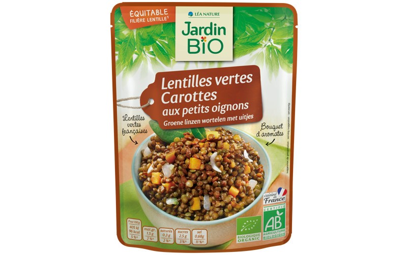 Cuisinée dans notre atelier 100% bio en Lot-et-Garonne, ce mélange de lentilles vertes et carottes, aux petits oignons, peut également servir d’accompagnement.