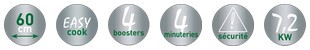 Cerise sur le gâteau… Pour encore plus de facilité : la fonction Easycook. Elle identifie le foyer idéal en fonction du diamètre du récipient pour une cuisson plus rapide, homogène et économique.