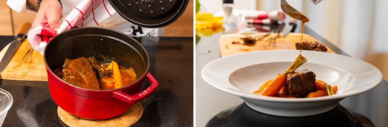 Place à Geoffrey Poesson pour son interprétation du « bœuf-carottes ». Ce plat authentique demande d’être mijoté à la perfection pour révéler toute sa saveur…