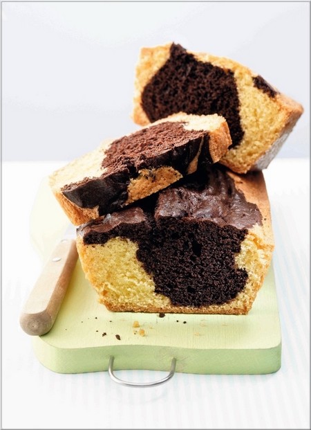 4• Verser dans un moule à cake beurré (sauf s’il est en silicone) en alternant les couches de pâte vanille et cacao.