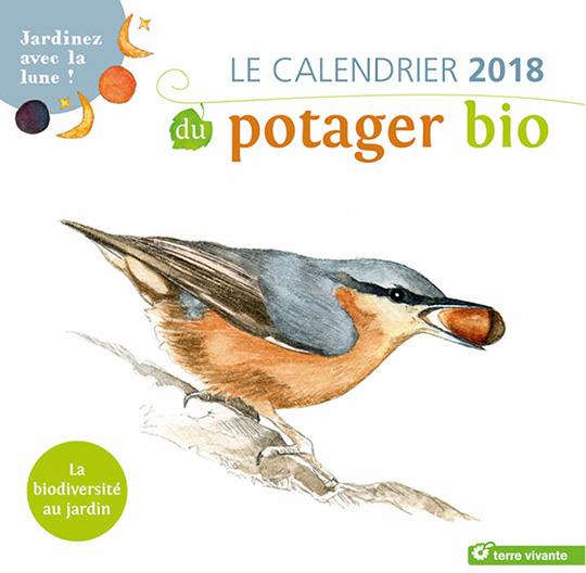Le calendrier du potager bio est un calendrier mural. Il rappelle mois par mois les gestes essentiels à faire au potager. Il indique et explique le calendrier lunaire pour planter et récolter les légumes au bon moment. Il précise également les évènements phénologiques et climatiques ainsi que les fêtes et vacances scolaires. Cette année, il est placé sous le signe de la biodiversité avec 12 aquarelles de faune et de flore.