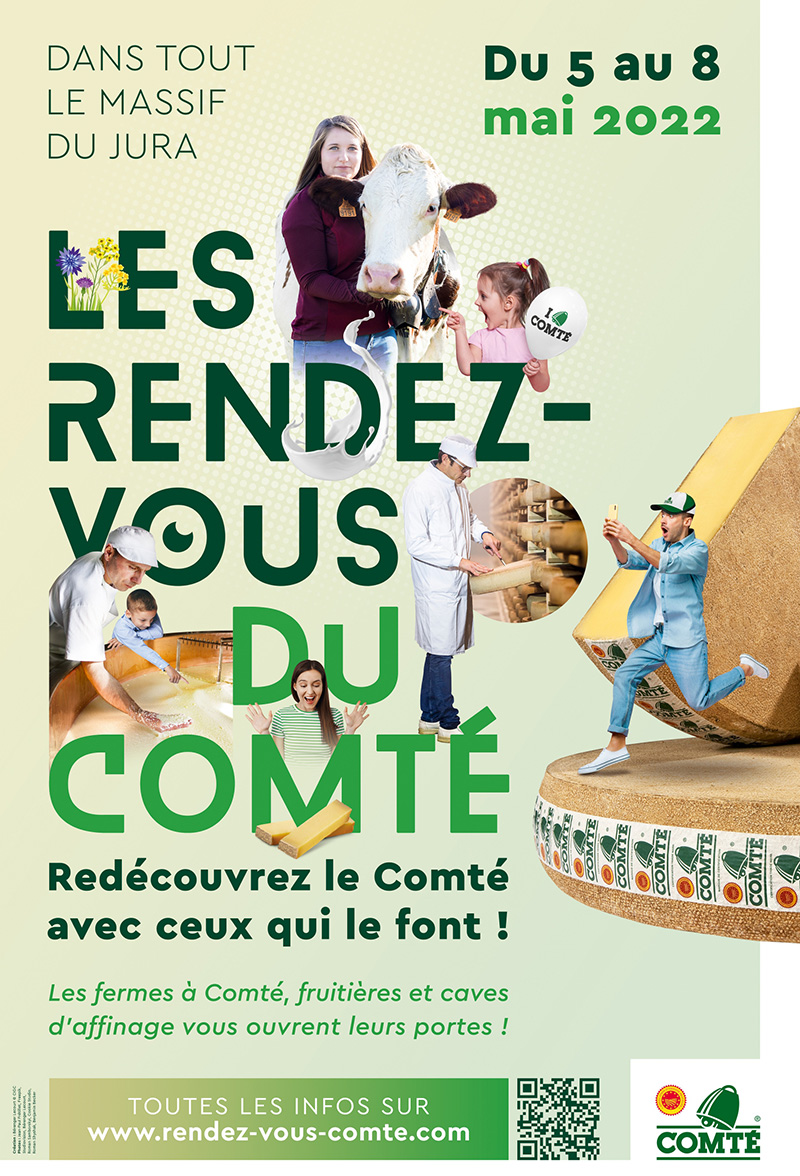 Pour la première fois, toute la filière AOP Comté se mobilise pour proposer au grand public quatre belles journées de partage et de découverte autour de la passion du goût et du terroir. De l’agriculteur à l’affineur en passant par les fruitières et les lieux de formation, les femmes et les hommes engagés qui font la qualité et le succès du Comté organisent dégustations, randonnées gourmandes, visites de fermes, de fruitières et de caves d’affinage, comme cela ne s’est jamais fait sur le territoire de l’AOP Comté. Dans le Doubs, le Jura et l’Ain, c’est en famille ou entre amis qu’on vient faire la connaissance des producteurs de lait accompagnés de leurs troupeaux, des fromagers et affineurs au milieu de leurs outils de travail, ou encore des formateurs entourés de leurs élèves : il y en aura pour tous les goûts !