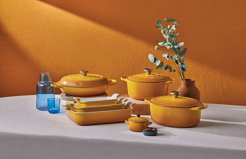 Notre nouveau jaune splendide apporte convivialité à chaque cuisine et table, en toutes occasions. NECTAR sera disponible dans une vaste gamme d'accessoires et d'ustensiles de cuisine en fonte émaillée et en céramique, allant du four à la table.