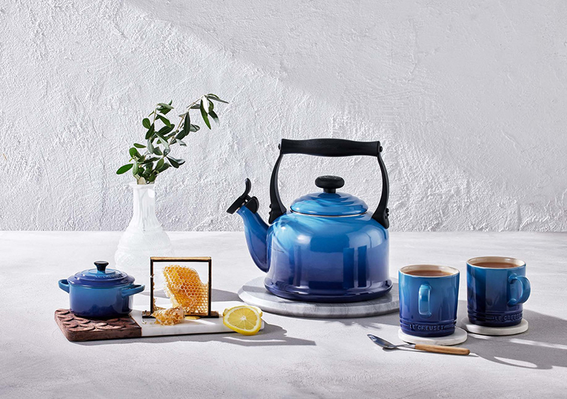 AZUR est disponible dans l'ensemble de nos gammes d'ustensiles de cuisine : fonte émaillée, céramique, silicone, bouilloire, moulins et plus encore…