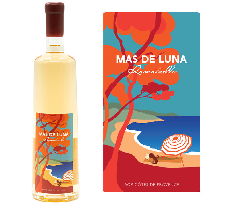 Comme un héritage, la cuvée Mas de Luna est un savant mélange de savoir-faire. Un concentré d’émotions. Ce rosé, Julia Joyandet l’a imaginé avec son cœur pour faire voyager en Provence et retrouver l’odeur du maquis, le chant des cigales, l’ombre des pins parasol. Son nom, c’est celui qui est inscrit sur la maison maternelle, tout près de Ramatuelle. Sur l’étiquette, designée par un illustrateur, la plage de l’Escalet est mise à l’honneur avec un pin parasol, symbole du golf de Saint-Tropez.