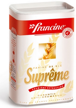 4• Lorsque le chocolat a fondu, j'y ajoute la farine Francine, le sucre, les jaunes d'œufs, le beurre et je mélange.