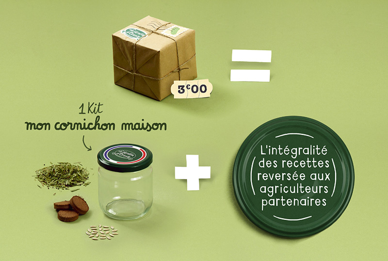 Cette année, les recettes de la vente des kits Mon Cornichon Maison seront intégralement reversées aux agriculteurs pour soutenir leur association « Les Cornichonneurs Français » dont la mission est de travailler au développement de la culture du cornichon en France. Aujourd’hui, elle fédère neuf producteurs qui en ont fait un espace de discussion autour des aspects techniques de la production, de la commercialisation et de la promotion du cornichon français. Leurs axes de travail sont le partage de conseils techniques d’experts en production de cornichons, le lancement d’une étude sur la sélection variétale pour améliorer leur adaptation aux conditions actuelles de production, le test de nouvelles pistes culturales (sous abri, en bio, etc.). Commander un kit c’est donc participer à la relance à son échelle mais également soutenir les efforts des agriculteurs de cornichons français.