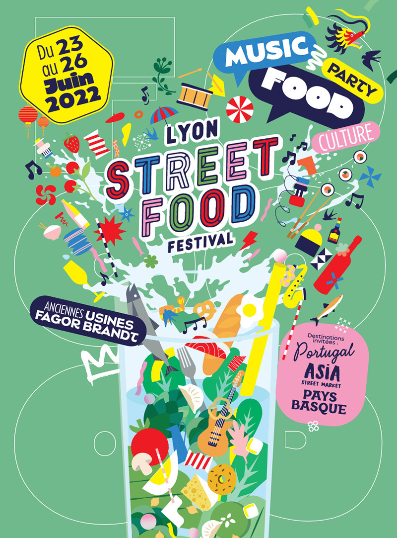 Après une 5ème édition couronnée de succès le Lyon Street Food Festival revient du 23 au 26 juin aux anciennes usines Fagor Brandt : le festival passe à l’heure d’été, promesse de vacances et d’évasion . Et maintenant, il est l’heure de terminer son sac à dos : le Lyon Street Food Festival fait son come back avec son roadtrip (f)estival ! Et qui dit « roadtrip », dit déambulations à travers 20 espaces intérieurs et extérieurs, entièrement scénographiés dans les 25 000 m2 des anciennes usines Fagor Brandt.
