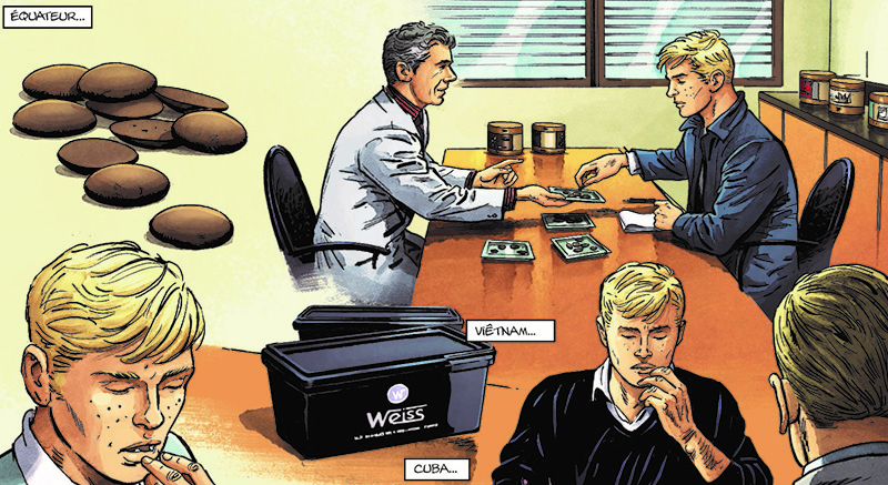 Idéalement située dans la prestigieuse Galerie de la Reine, à deux pas de la célèbre Grand-Place de Bruxelles, la chocolaterie de Gérard Perdreaux jouit d’une renommée internationale. Cette réputation d’excellence, elle la doit d’abord au savoir-faire de son maître-chocolatier Alexis Carret. C’est au travail en coulisses de ce très talentueux artisan que l’enseigne doit en effet son florissant chiffre d’affaires. C’est lui qui sélectionne les meilleures fèves de cacao. C’est de lui surtout que viennent les idées innovantes et les assemblages qui plaisent aux gourmets. De son métier, Alexis a fait un art et une passion. Humble et discret, le garçon préfère toutefois laisser son employeur se prévaloir indûment de ce succès. Cette apparente absence d’ambition, qui lui vaut d’ailleurs les reproches des siens, n’en recèle pas moins de secrètes envies d’autonomie… L’opportunité de franchir le pas va lui être offerte lors d’une soirée organisée par son amie d’enfance Clémence. Cette occasion a pour nom Benjamin Crespin, un jeune loup aux dents longues dont l’obsession est de faire fortune. Celui-ci parvient à convaincre Alexis de créer sa propre marque et d’ouvrir, avec lui, sa propre boutique…
