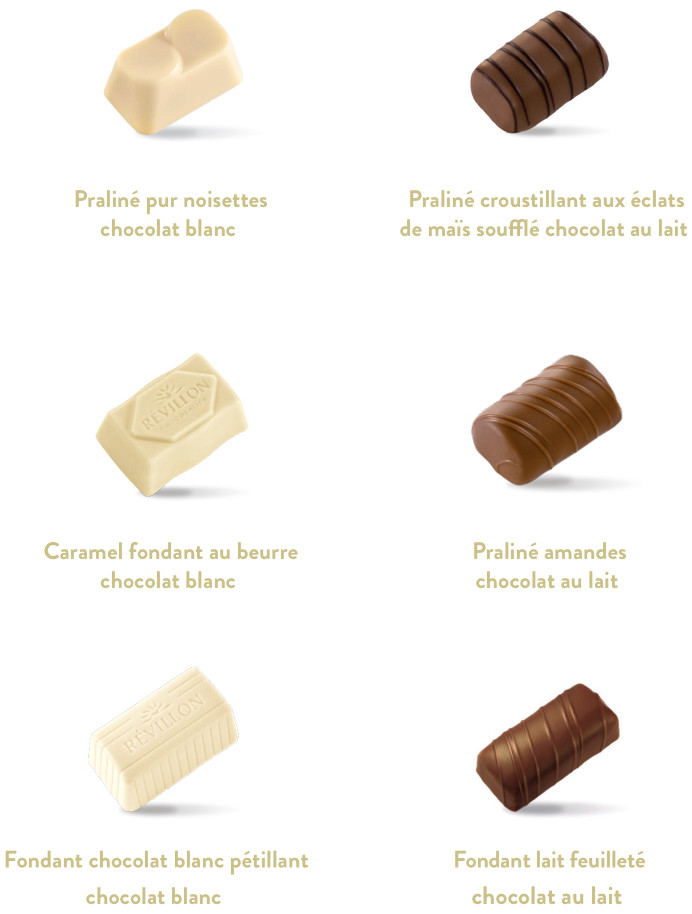 Ce nouvel assortiment généreux composé de 6 recettes sélectionnées autour du savoir-faire Révillon Chocolatier comble sa gourmandise…