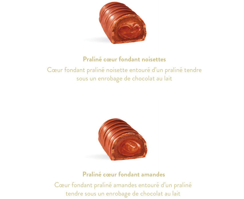 À Noël, on redevient tous de grands enfants… et ce n’est pas Michel qui dira le contraire. Son péché mignon ? Les pralinés intenses et onctueux. Enrobé d’une fine couche de chocolat au lait, le Double praliné célèbre l’union parfaite entre le croquant délicat de l’enrobage et le fondant unique d’un subtil praliné réalisé avec des fruits secs sélectionnés avec soin. Son tendre praliné cache en son cœur un autre praliné encore plus fondant et gourmand, pour une découverte enivrante ! Délicatement enveloppée dans un emballage scintillant, cette papillote est accompagnée d’un message – citation, proverbe ou phrase positive – à partager avec ceux qui nous entourent.