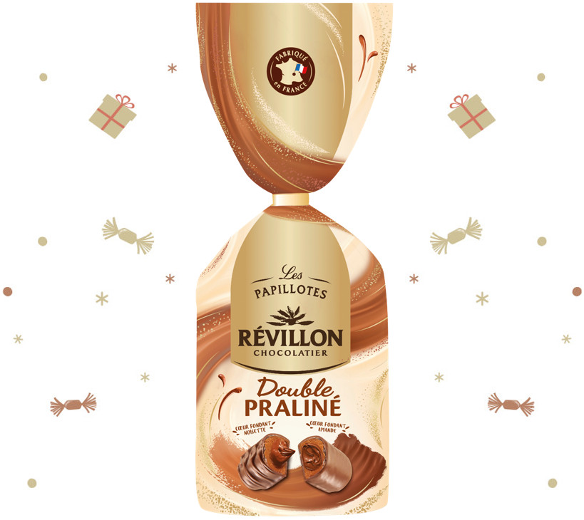 Douceur sophistiquée offrant une harmonie des goûts et des textures lors de sa dégustation, le Double praliné de Révillon Chocolatier sera sans nul doute le rendez-vous de l’ultra-gourmandise des fêtes de fin d’année. Délicatement enveloppée dans un emballage scintillant, cette papillote est accompagnée d’un fameux message – citation, proverbe ou phrase positive à partager avec ceux qui nous entourent.