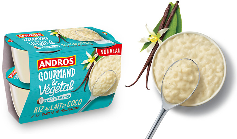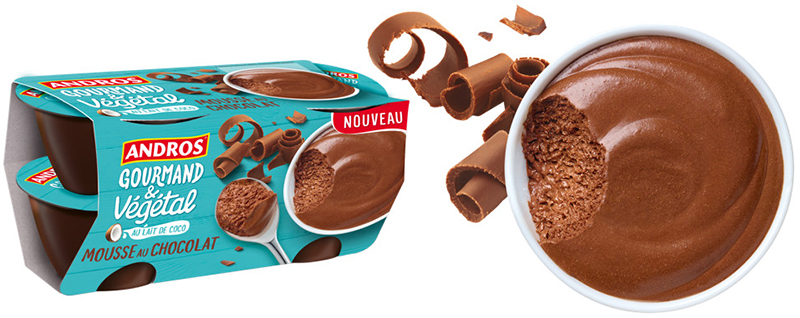 Fort de son succès, Andros Gourmand & Végétal se lance aujourd’hui de nouveaux défis : réinterpréter deux monuments de la gastronomie française. Désormais, le riz au lait et la mousse au chocolat existent en version végétale, pour allier plaisir et bien-être, sans concession.