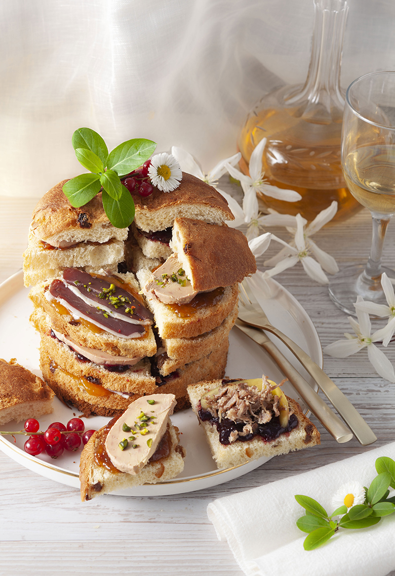 « La fête de la musique », « La fête des voisins » et autres fêtes de nos régions peuvent accueillir autour de ce pain-surprise au Foie Gras, Magret et Confit !