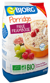 Véritable alternative aux traditionnnelles tartines beurre-confiture, Bjorg propose son nouveau Porridge Figue Framboise. Une recette inédite riche en fibres et en protéines constituée à 90% d'avoine et agrémentée de délicieuses framboises et figues.