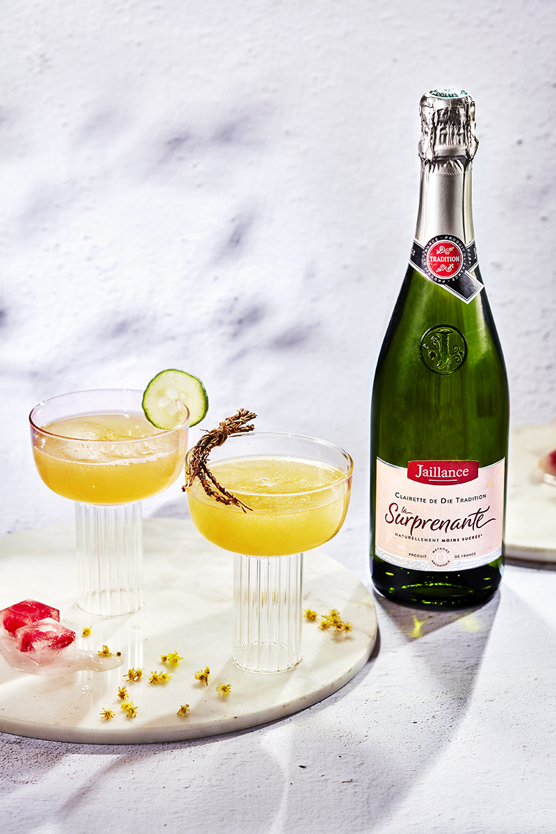 L’arrivée des beaux jours marque le retour de rassemblements heureux en famille ou entre amis. Autour d’une tablée campagne chic et pour entamer le repas sous les meilleurs auspices, le cocktail starifie le verre. Jaune éclatant il illumine brunchs, réunions de famille ou encore apéritifs pour prolonger et pimper l’expérience Jaillance.