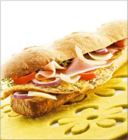 4• Pliez l'omelette en quatre et garnissez le pain avec.