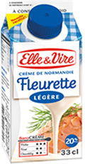 Elle & Vire a développé une recette de Crème Fleurette Légère reconnue pour sa performance en cuisson dans des recettes salées ou sucrées.