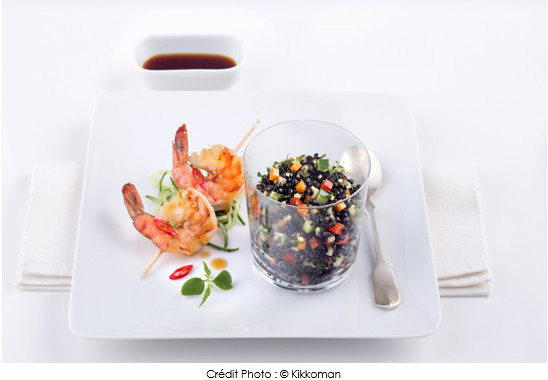 lentilles_beluga_tiedes_aux_epices_avec_brochette_de_gambas