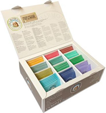 Composition : 72 sachets issus de 11 variétés d’infusions (Infusion des Marmottes ; Camomille Matricaire ; Menthe Tilleul Verveine ; Thym ; Fenouil ; Cynorrhodon Hibiscus ; Vigne Rouge ; L’infusion des enfants Yodie ; Cocktail Digest ; Détox et moi ; Retour à la ligne) et 1 variété de thés (Thé vert à la menthe).