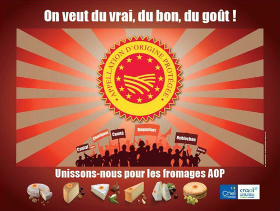 Depuis le 1er mai 2009, le logo européen AOP ou la mention littérale "Appellation d'Origine Protégée", sont obligatoires, en France, sur les emballages de tous les produits bénéficiant d’une AOC (Appellation d’Origine Contrôlée) et ayant rejoint la famille des AOP européennes. Aujourd’hui, on dénombre 46 AOP laitières françaises : 43 fromages, 2 beurres et 1 crème.