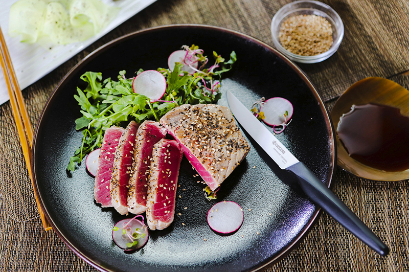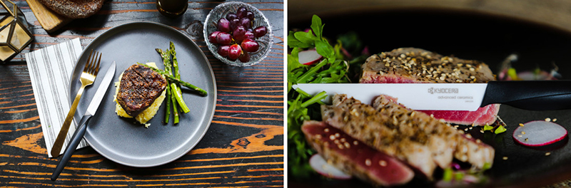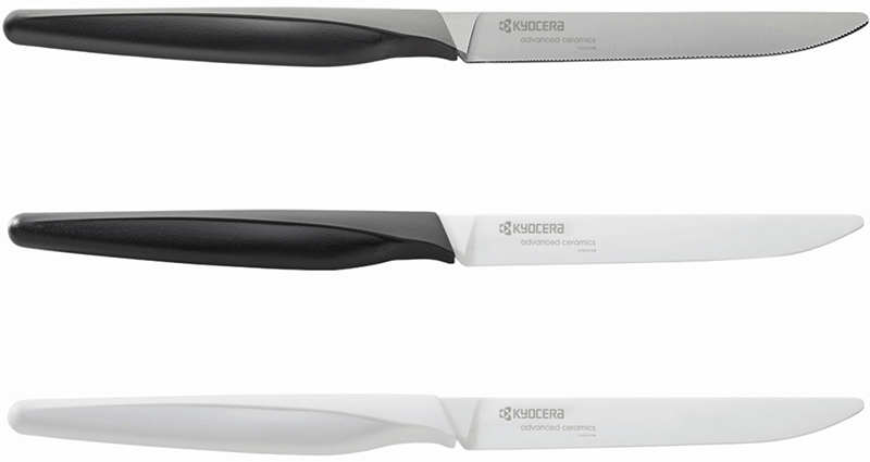 En 2018, KYOCERA entre dans le cercle exigeant des Arts de la Table avec sa très belle collection de couteaux steak à la fois élégants et résistants ! La lame crantée en céramique est extrêmement dure, résiste à la chaleur et conserve son tranchant durablement.