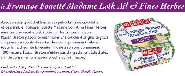 ► 1 pot de Fromage Fouetté Madame Loïk Ail & Fines herbes