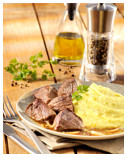 Un plat élaboré avec de tendres morceaux de bœuf grillé cuisinés dans une marinade aux 3 poivres (poivres noir, blanc et vert) qui relève subtilement le bon goût de viande. Le tout accompagné d’une onctueuse purée de pommes de terre.