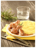 Une recette qui sent bon le Sud avec des morceaux de porc grillé accompagnés d’un jus mariné aux herbes de Provence et d’une savoureuse purée de pommes de terre.