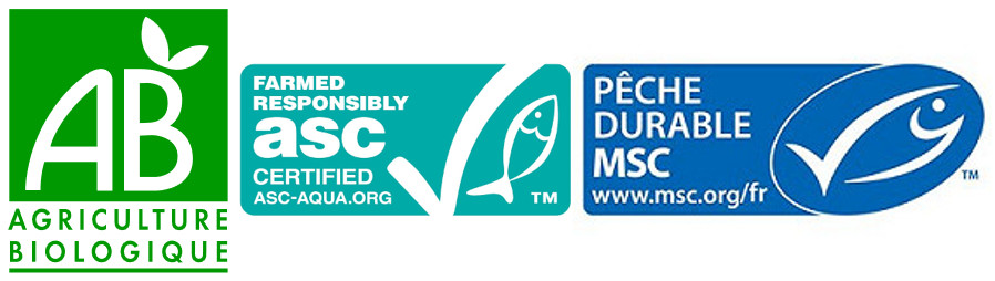 • Une aquaculture responsable selon le référentiel ASC 1, qui repose sur 5 piliers : le respect de la biodiversité, une alimentation contrôlée des poissons élevés, la mesure de la pollution des eaux d’élevage, le contrôle des épidémies et le respect des normes sociales.