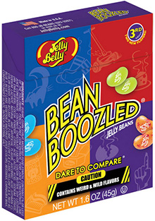 Jelly Belly Bean Boozled propose une gamme de bonbons hauts en couleurs, avec 16 saveurs unique, très proches de la réalité. Chaque boite contient 8 couleurs différentes et deux bonbons identiques aux saveurs délicieuses ou….dégoutantes. Aucun moyen de les distinguer sans les croquer !