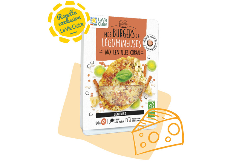 BURGERS DE LENTILLES CORAIL AUX LÉGUMES ET À L’EMMENTAL BIO