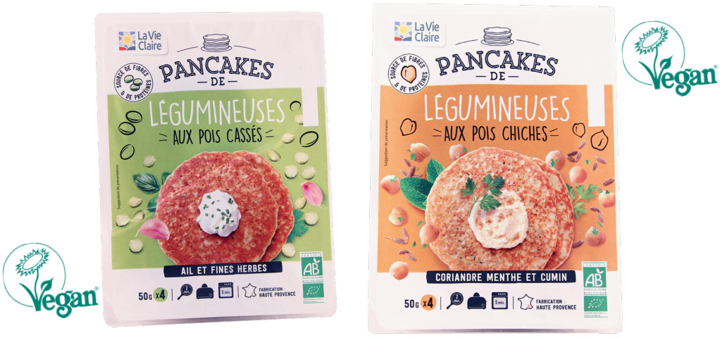 La Vie Claire sort deux nouvelles références de pancakes salés à base de légumineuses bio et propose une façon originale de consommer des légumineuses. Ces recettes La Vie Claire sont élaborées dans un atelier en Haute-Provence. Voici une façon originale et pratique de consommer des légumineuses.