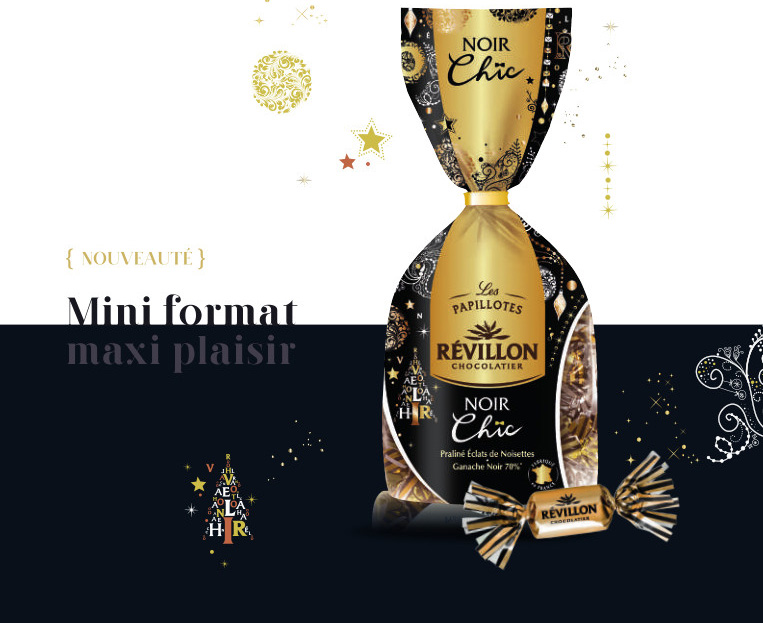 Parce que croquer sa première papillote est la promesse d’une aventure gustative sans limite, Révillon Chocolatier décline la collection Noir Chic dans un petit format pour faire découvrir la magie et les saveurs uniques des papillotes à son entourage.