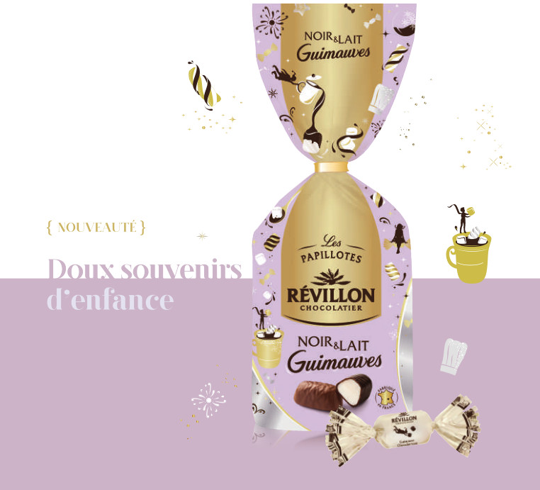 Les fêtes de Noël sont avant tout une parenthèse familiale faite de complicité, de rires, de rêves et de plaisirs partagés… et de souvenirs liés à l’enfance. Révillon Chocolatier unit pour la première fois le moelleux de la guimauve et le craquant du chocolat noir et du chocolat au lait pour des pauses gourmandes remplies de tendresse qui réuniront petits et grands