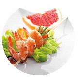 Le cidre rosé pamplemousse accompagne à merveille des verrines à base des petites crevettes ou encore des mini-brochettes oranges / noix de Saint-Jacques. Ainsi, l’alliance agrumes-crustacés renforce cette note de fraîcheur.