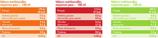 Ingrédients : jus de carotte 40%, jus d’orange 40%, jus de pomme