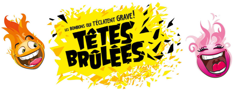 Le nouvel habillage des Têtes Brûlées est en parfaite adéquation avec ce nouvel univers. La nouvelle mascotte a ainsi troqué son air agressif pour un style complètement déjanté et une bonne humeur communicative ! En rayon, les célèbres bonbons Têtes Brûlées ne passent pas inaperçus avec leur nouveau logo actualisé et leur nouvelle signature « Les bonbons qui t’éclatent grave ! ». Le logo a en effet été entièrement revu et actualisé. Le fond jaune et les lettres se décomposent façon éclats pour traduire l’intensité des sensations offertes par les Têtes Brûlées. Son rendu est ainsi très dynamique.