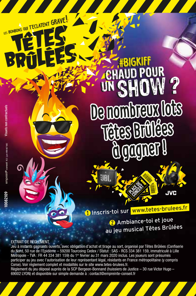 Le jeu est ouvert du 1er février au 31 mars 2020, il s’agit d’instants gagnants et de tirages au sort, soumis à l’achat d’un sachet de la gamme des Têtes Brûlées.