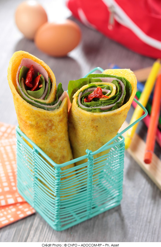 Les Wraps d’omelette au jambon et pousses d’épinards