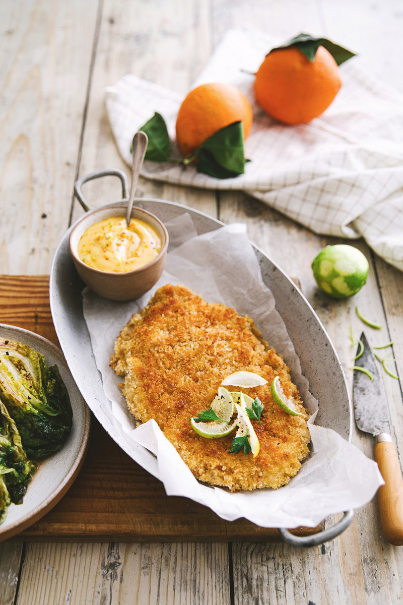 L’escalope de veau à la milanaise, mayonnaise aux agrumes
