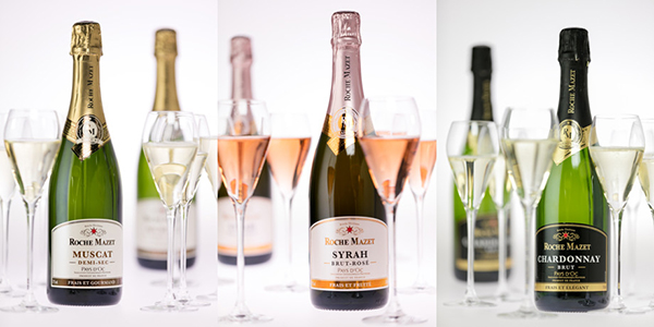 Marque experte de la catégorie des vins tranquilles, ROCHE MAZET se décline depuis 2014 sur les vins effervescents avec une gamme composée de trois références : un Chardonnay Brut et un Muscat Demi-Sec en blanc, ainsi qu’une Syrah Brut en rosé.