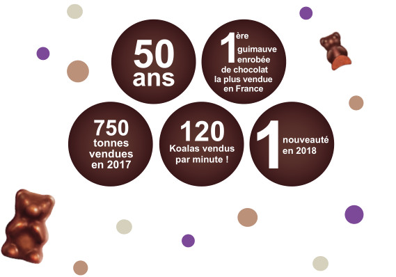 Crée en 1968, ce petit Koala intemporel qui a marqué l’univers du bonbon est avant tout l’histoire d’une rencontre. Celle d’un cœur de guimauve extra moelleux et d’un délicieux enrobage au chocolat lait.