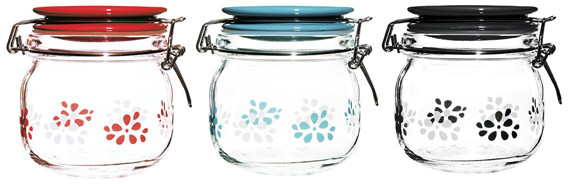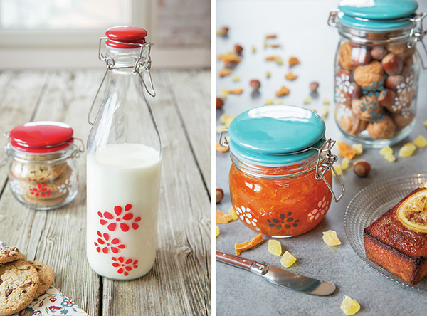 Un léger vent bucolique va planer dans votre cuisine, avec ces bocaux et ces bouteilles en verre décoré et en céramique colorée.