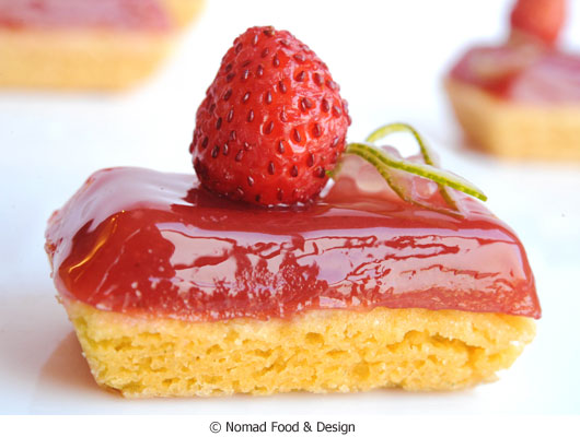10• Verser la préparation de fraises des bois juste tièdes sur les bases de biscuit cuites à blanc.